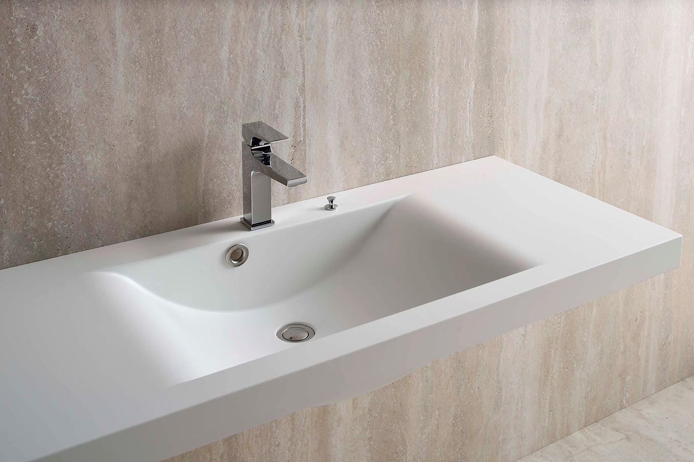 Chậu rửa mặt liền khối bằng đá cẩm thạch nhân tạo BMC của YOSHIMOTO có phần chậu và phần mặt đá dài được ép liền thành một khối nhờ công nghệ ép hiện đại dưới nhiệt độ và áp suất cao. Nhờ đó, bạn không cần phải mua riêng mặt đá và chậu rửa rồi tốn công cắt mặt đá và gắn chậu bằng keo silicon – vốn dễ gặp tình trạng bám bẩn và nấm mốc sau một thời gian sử dụng.