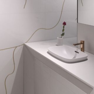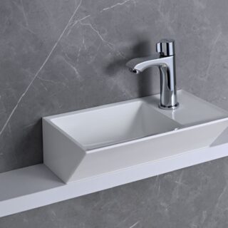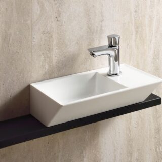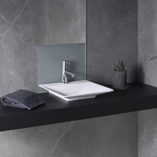 Phong cách hiện đại tối giản: Đường nét vuông vắn, gọn gàng, không chi tiết thừa. Chậu vuông SQRII600 hoặc SQRII750 với góc bo tròn nhẹ phù hợp nhất – tạo cảm giác sạch sẽ, dễ kết hợp với vòi nước và gương tối giản. Chậu vuông nhỏ EM3737 phù hợp khi phòng tắm theo xu hướng tối ưu không gian sống nhỏ hẹp.