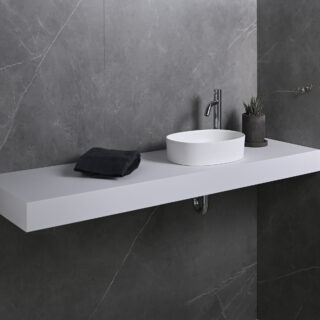 Chậu liền khối (bowl integrated vanity counter) – chậu và mặt kệ là một khối duy nhất, không mối nối – là giải pháp tốt nhất về vệ sinh lâu dài. Không silicon, không kẽ hở tích bẩn, không ố vàng viền chậu. Yoshimoto cung cấp chậu âm bàn UR3854 và US3046 lắp liền khối với mặt kệ ULTRA SURFACE. Chi tiết hơn về Kinh nghiệm chọn chậu rửa mặt liền khối.